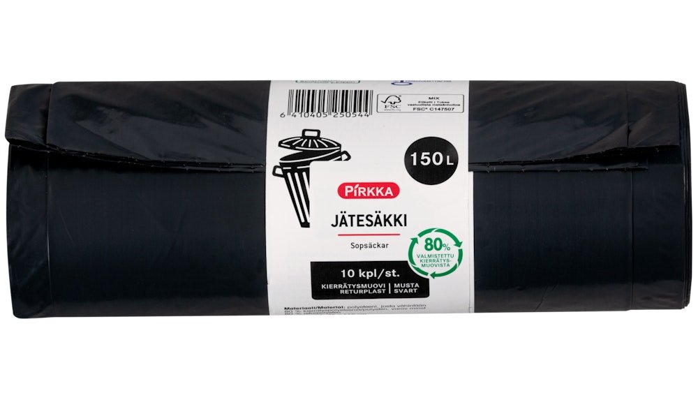 Pirkka jätesäkki musta 150l 10kpl