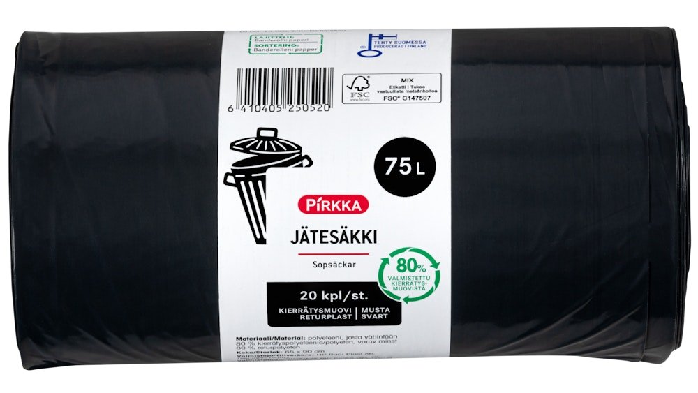 Pirkka jätesäkki 75l 20kpl musta