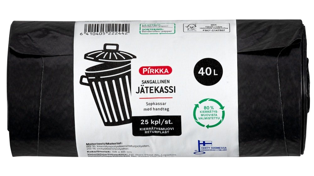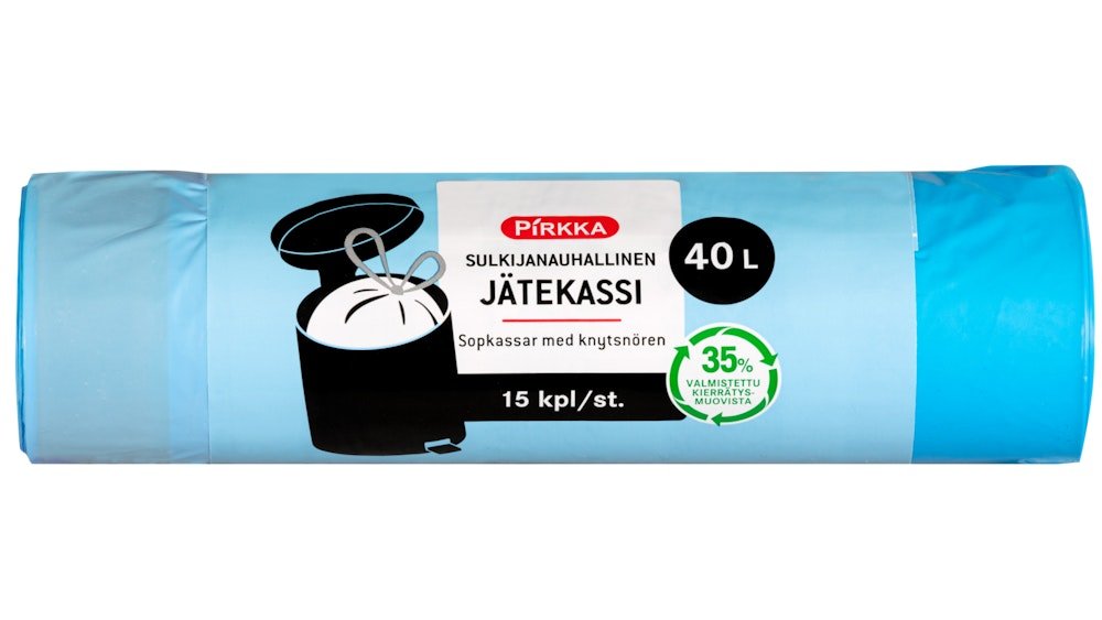 Pirkka jätekassi kierrätysmuovi 40l/25kpl sangallinen