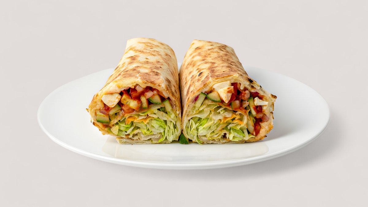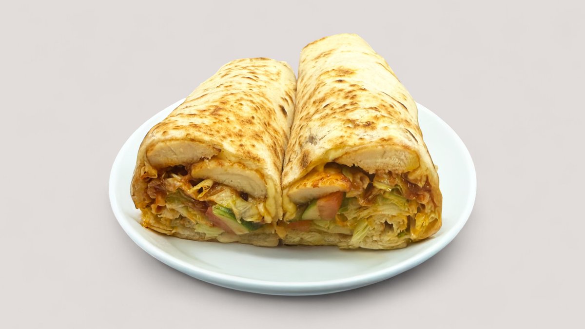 Kananrintafileitä, salaattia, kebabkastiketta, juustoa, amerikan-kastiketta pitaleipään käärittynä