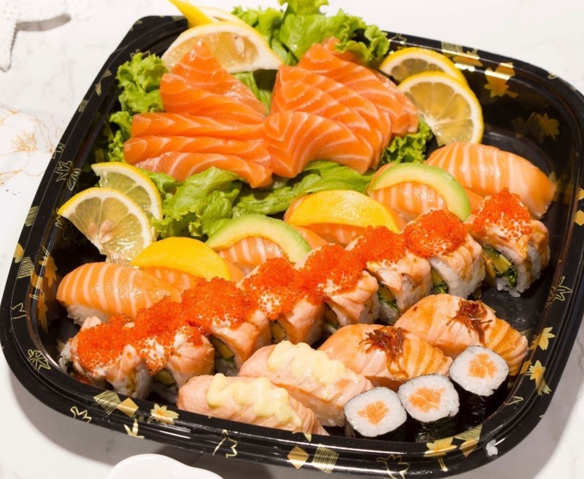 Lohi x 30 Katkarapu x 20 Tonnikala-majoneesi x 26Grillattu lohi x 30 Yakimaki x 16 Kappamaki x 16Shakemaki x 16 Tokyomaki Tempura x 16