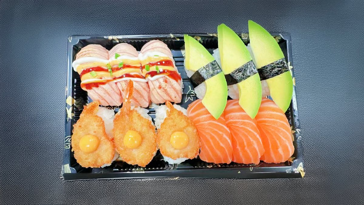 Avocado x 2 tamago x 2 wakame x 2 shakemaki x 8 inari x 2