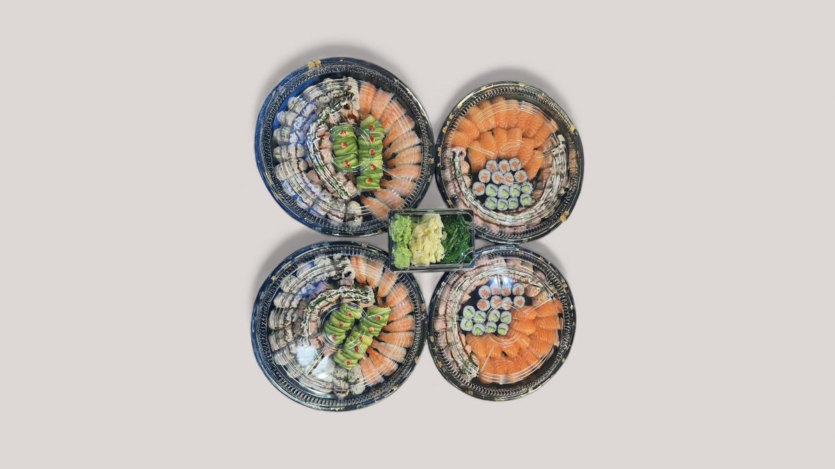 Lohi x 35 Grillattu lohi x 35 Ebi jattiKatkarapu x 20 Friteerattu katkarapu x 20 Tonnikala-majoneesi x 30 Avocado x 20 Surimi gunkan x 20 Kappamaki x 24 Shakemaki x 24 Surimimaki x 24 Tokyomaki Tempura x 8 Yakimaki x 8