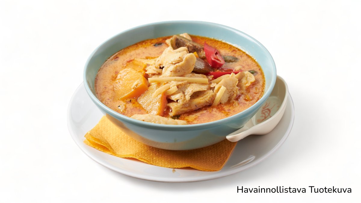 Haudutettuja kanafilee paloja tomaatti-, sipuli- ja currykastikkeessa (G, L)