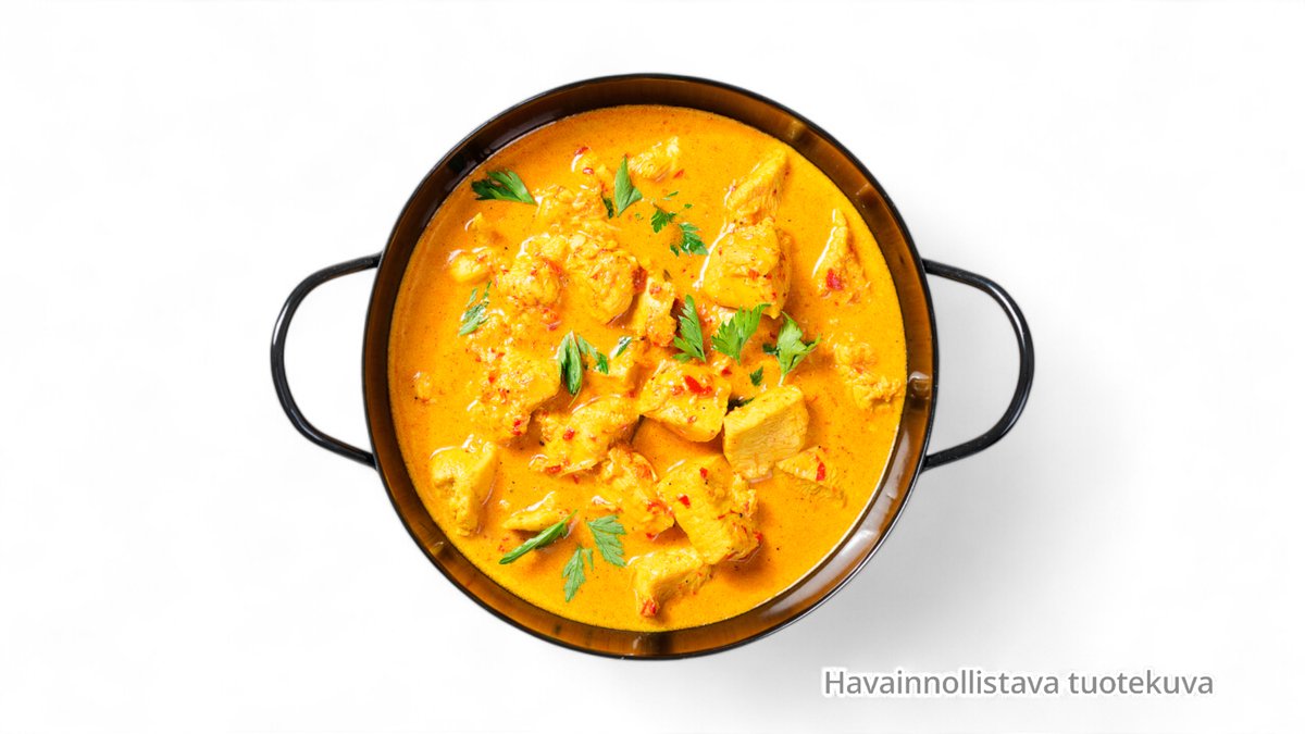 Haudutettuja kanan rintafilee paloja tomaatti-, cashew-, kookos- ja kermakastikkeessa (G)