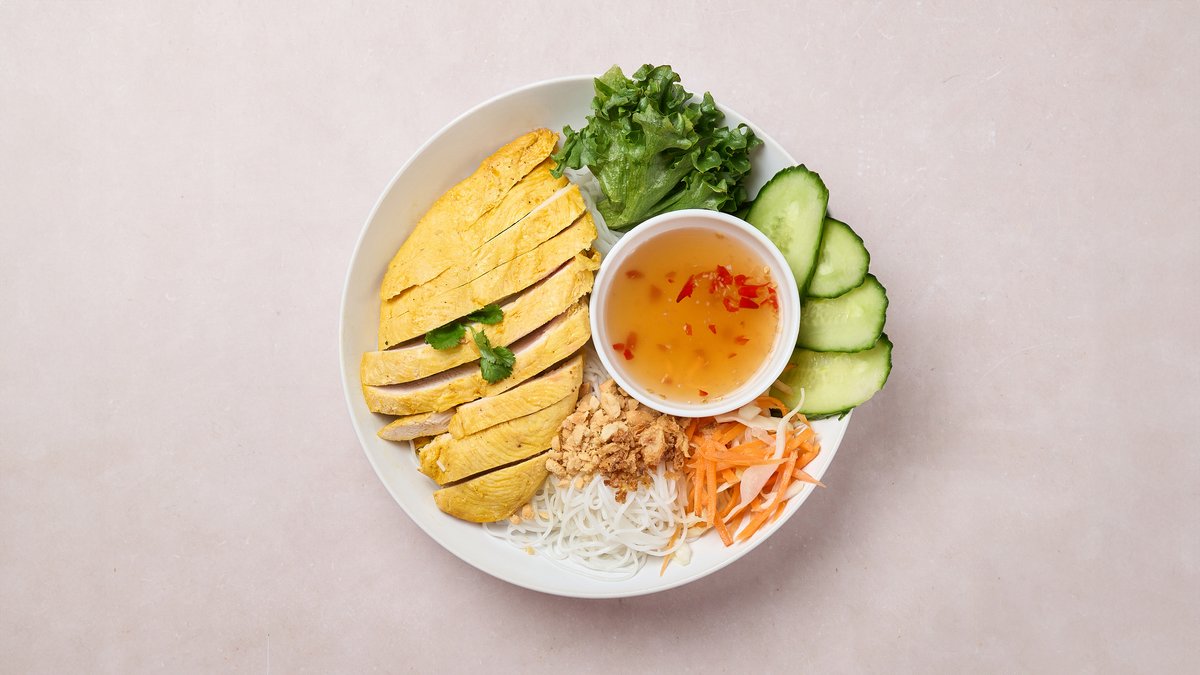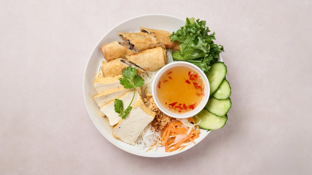 Vietnamilainen kasvisruoka, joka sisältää riisinuudelia, paistettua tofua, salaattia, yrttejä. Annos tarjoillaan soija- ja kalakastikkeen (kasvisversio) kanssa