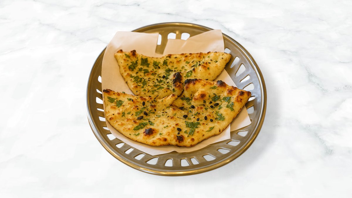 Tandoor-uunissa paistettu pehmeää leipää paahdetulla valkosipulilla