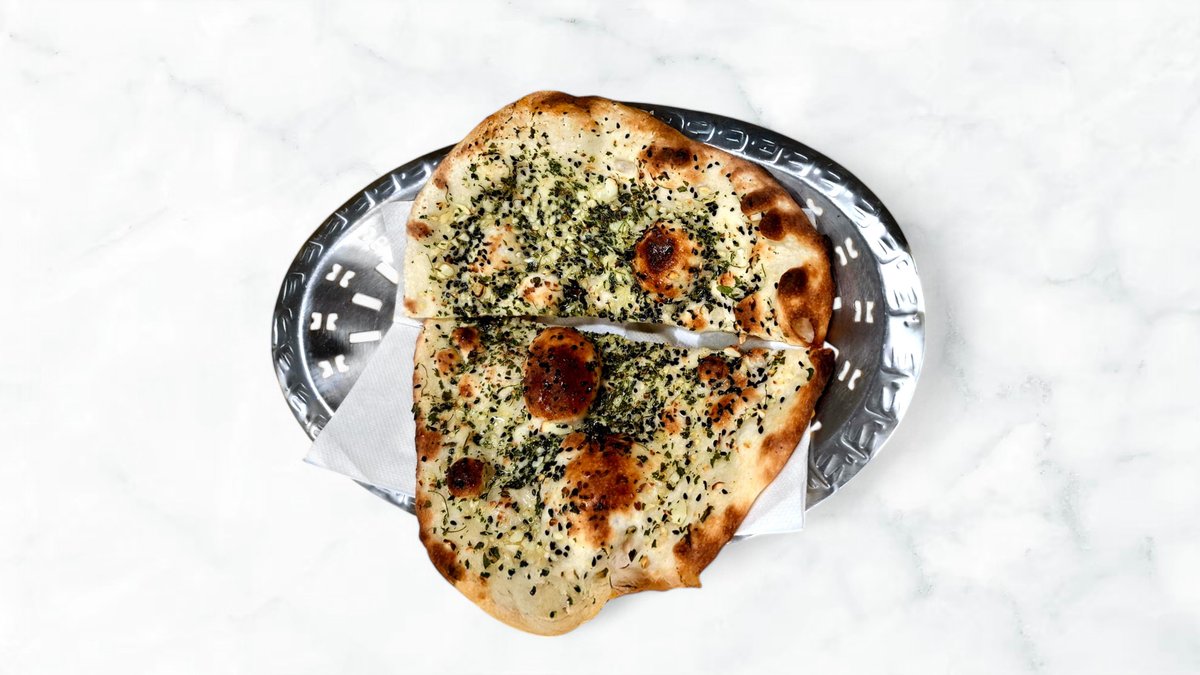 Naan-leipä täytettynä valkosipulilla maustetulla raejuustolla