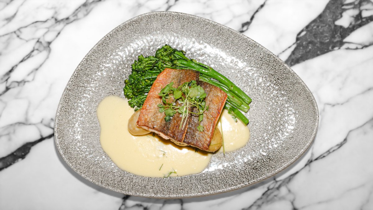 Paistettua nieriää, ruskistettua voita, puikulaperunamuusia ja kauden kasviksia