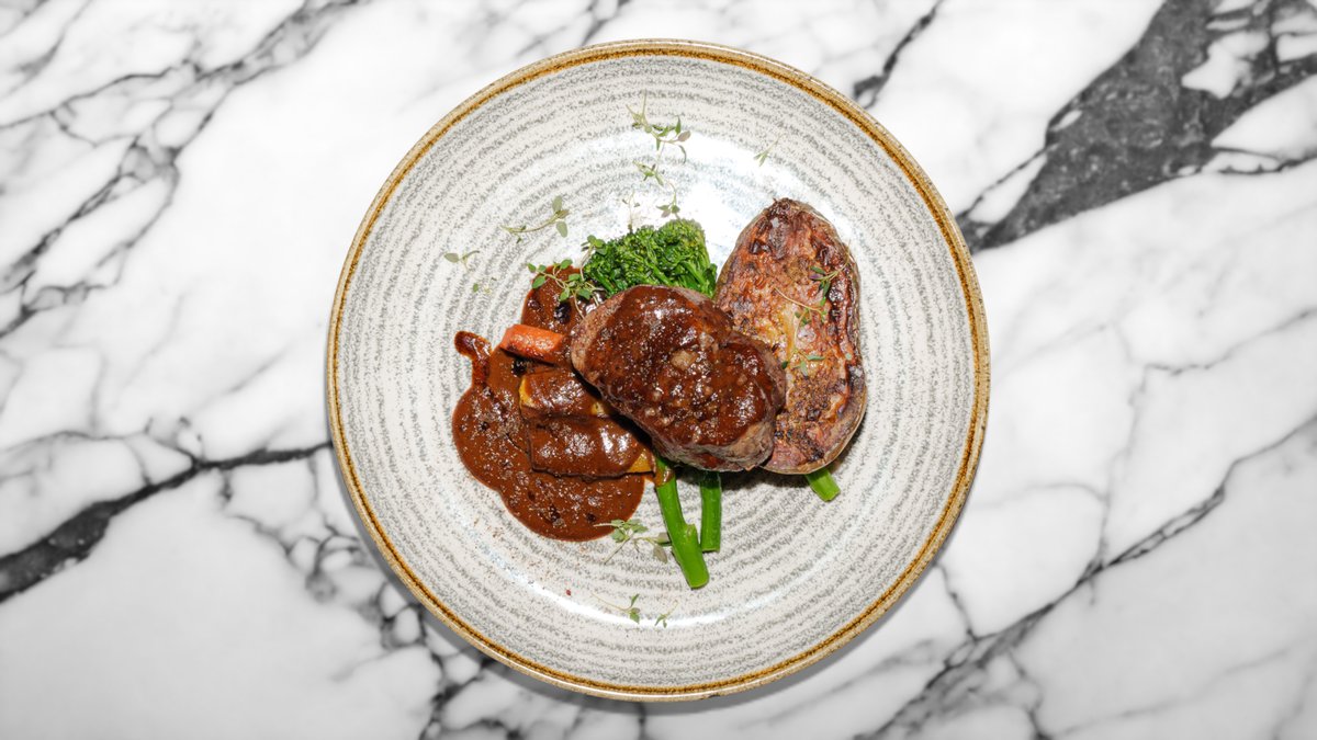 Naudan sisäfileetä (180 g), kermaista pippuri-jaloviinakastiketta, kauden kasviksia ja maalaisranskalaiset