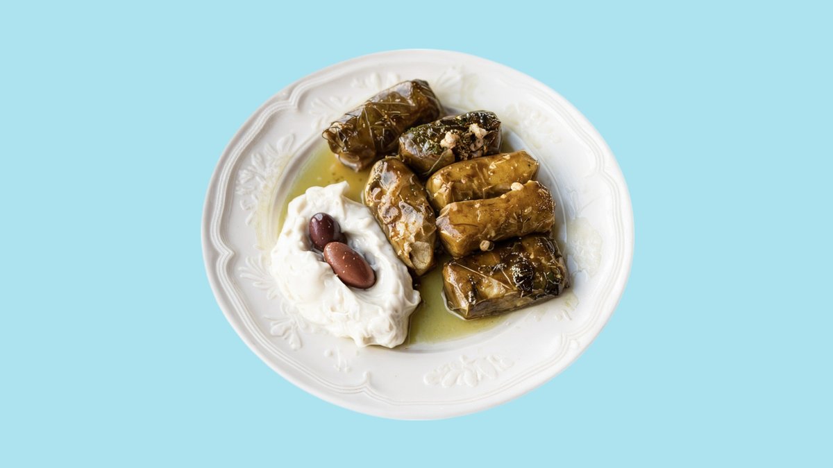 6pcs Feuilles de vigne, farcies avec du riz de la viande hachée et sauce tzatziki