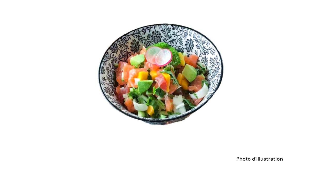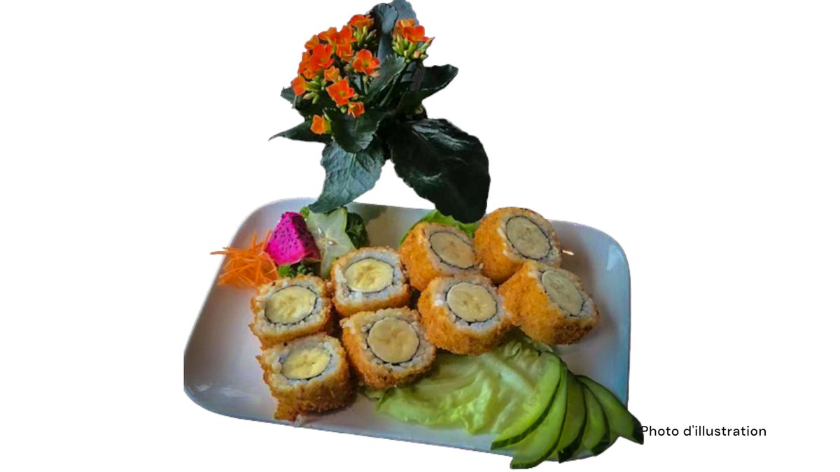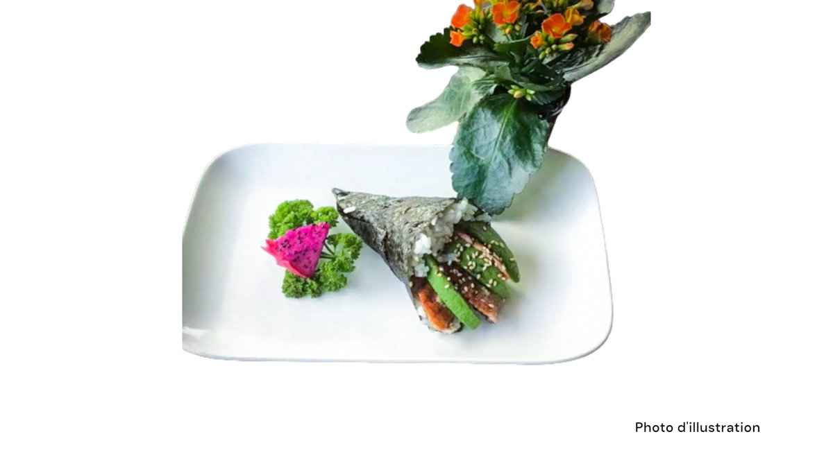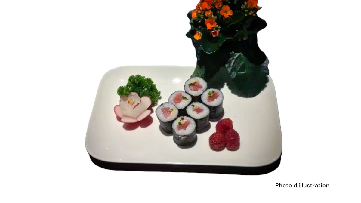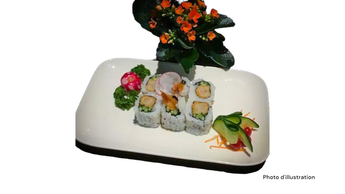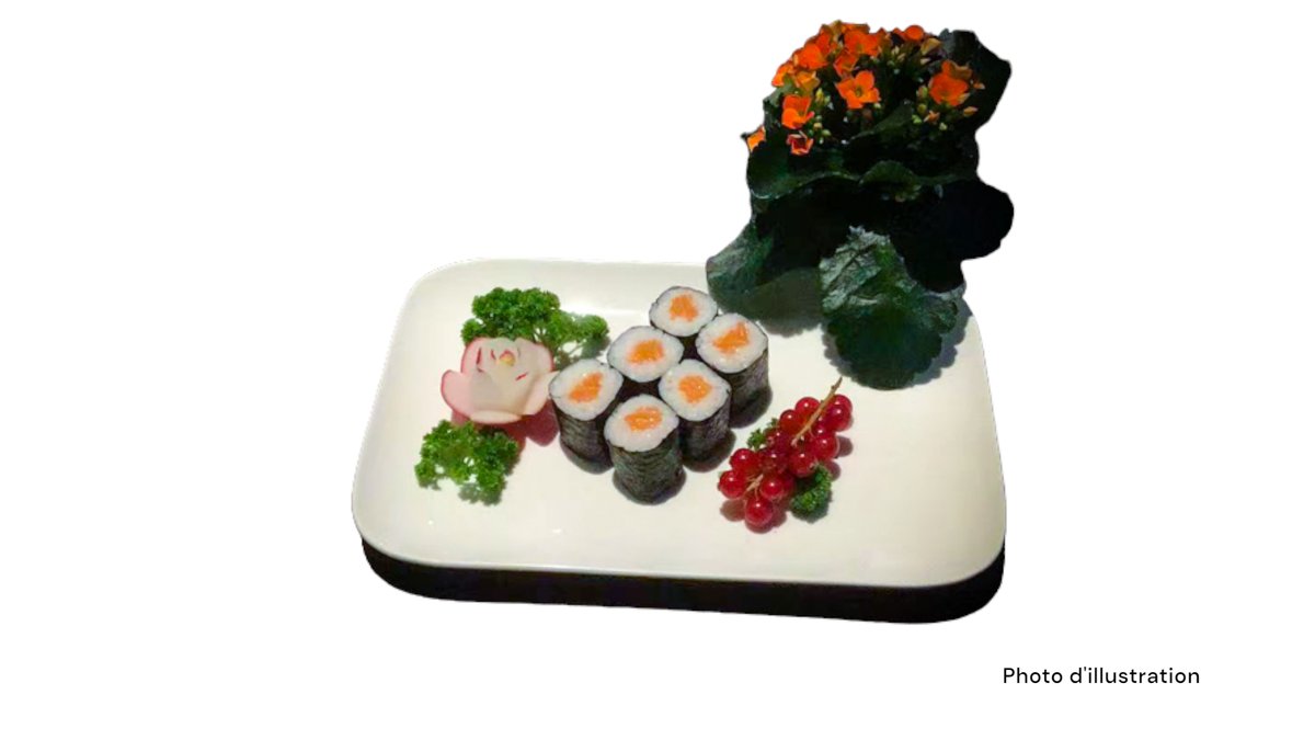 2 Sushi saumon 2 sushi thon 2 sushi saumon mi-cuit 2 sushi thon mi-cuit 5 sashimi saumon 8 california mi-cuit (saumon concombre spicy saumon mi-cuit teriyaki oignon frits)