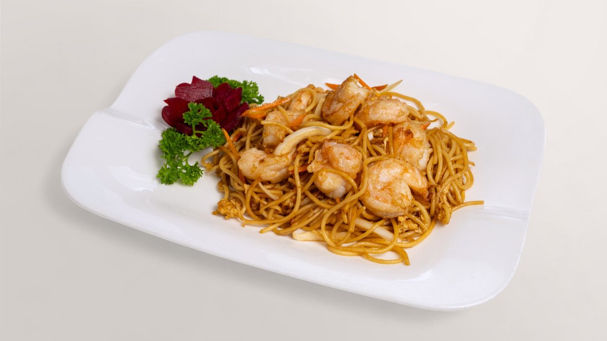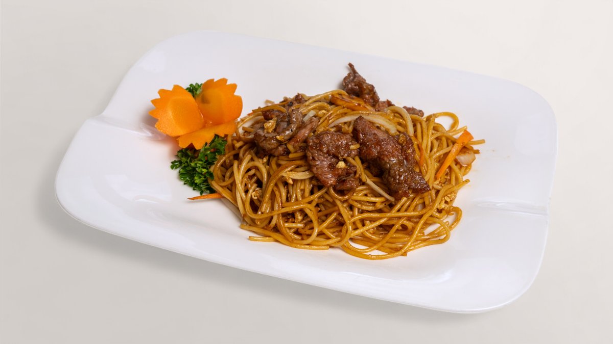 Nouilles sautés avec chou chinois, poivrons rouges et verts, et champignons Shiitake!
