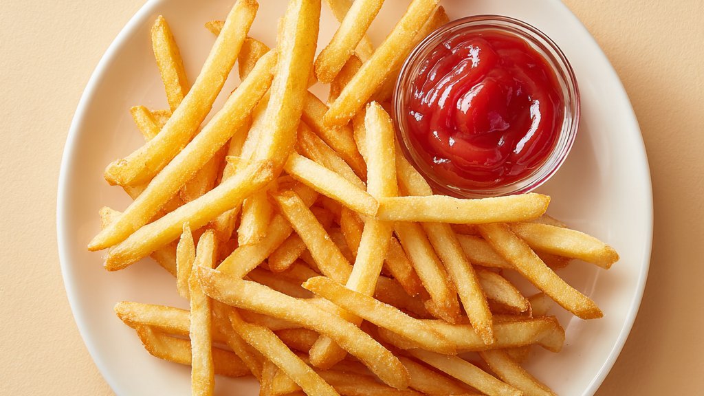 Frites dorées et croustillantes servies avec une sauce au choix.