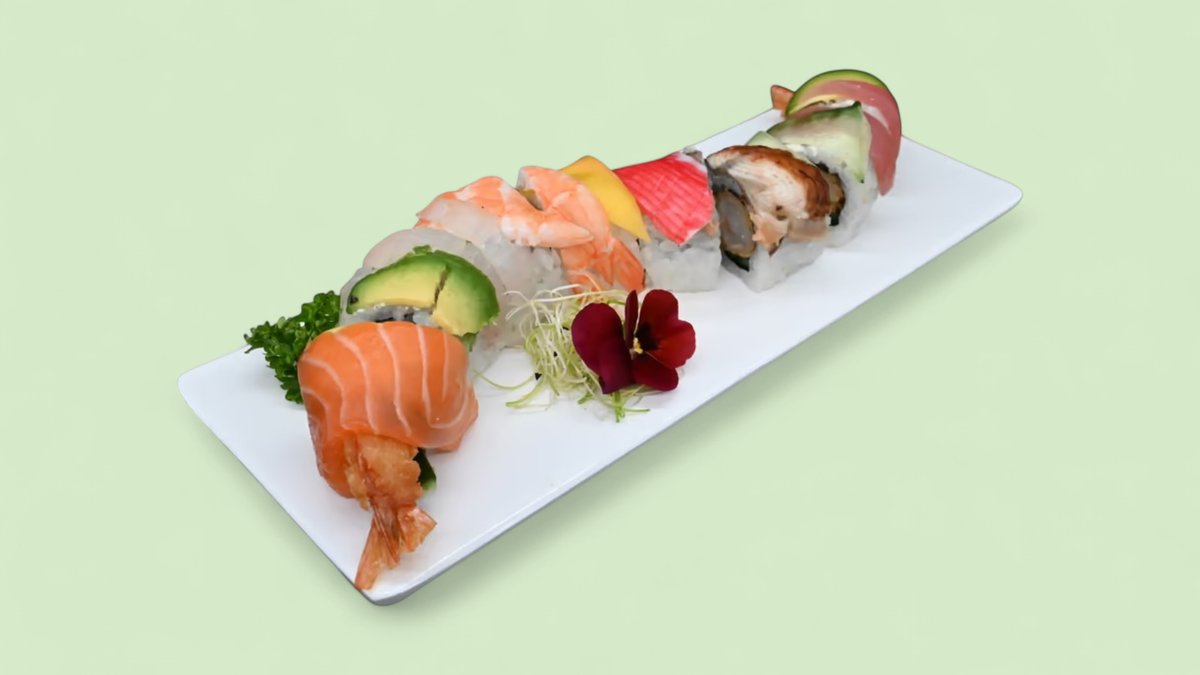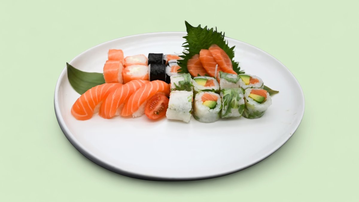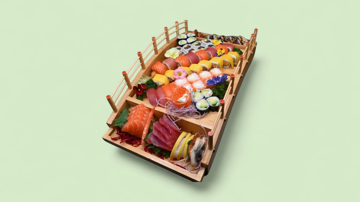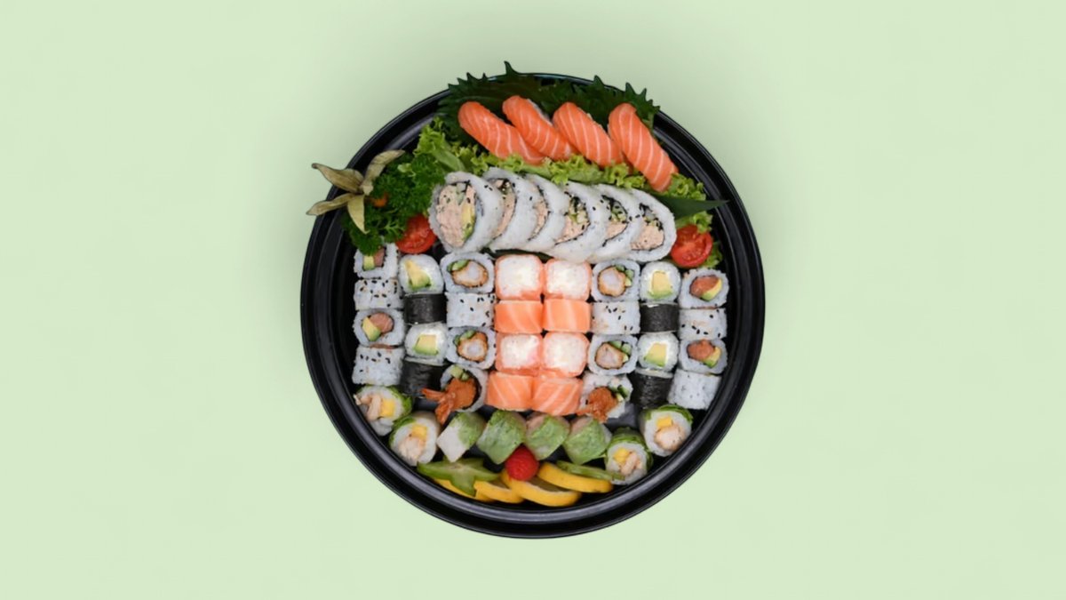 50pcs California surimi x8 Maki saumon roll x8 Tempura poulet x6 Maki thon x8 Sashimi thon x4 Sushi saumon x4 Sushi thon x3 Sushi scampisx3 Sashimi saumon x4 Sashimi dorade x2