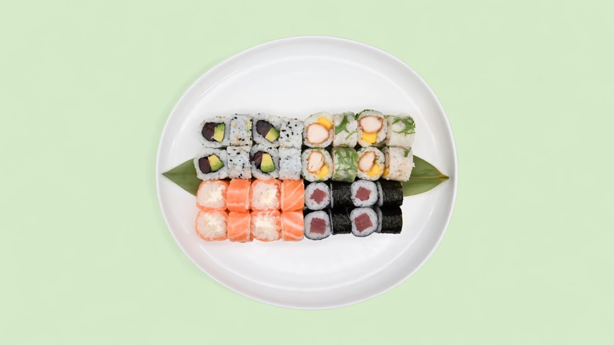 50pcs Sushi saumon x4 California saumon x8 Maki avocat cheese x8 California tempura x8 Maki saumon roll x8 Big roll thon cuit x6 Printemps roll chicken x8 1.2.3.4.7.11