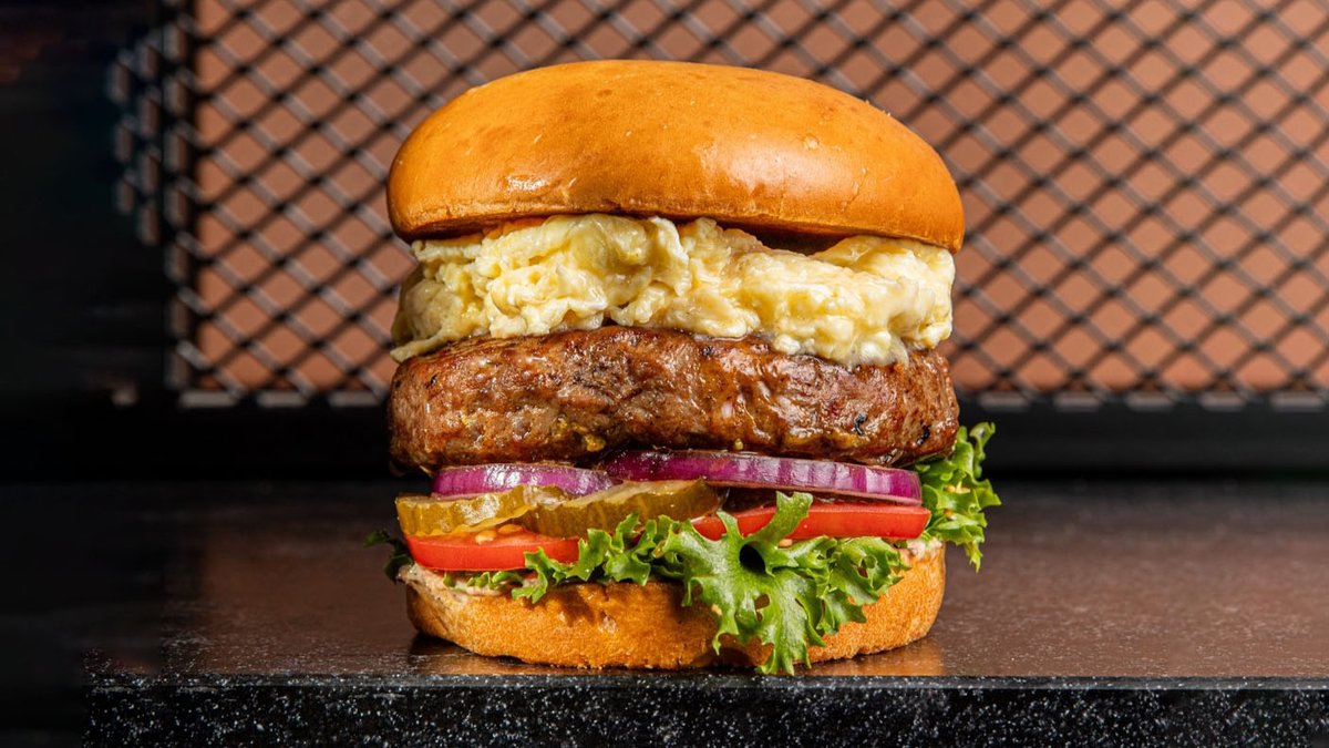 ביפבורגר 200 גר' בלאנד שלנו, ביצה מקושקשת רכה, רוטב אפאצ'י, חסה, עגבניה, בצל ומלפפון חמוץ מתוק