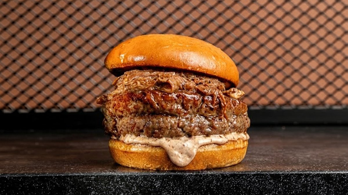דאבל סמאש ביפבורגר עם גבינה טבעונית ורוטב אפאצ'י מוגש ללא ירקות