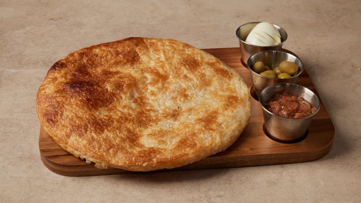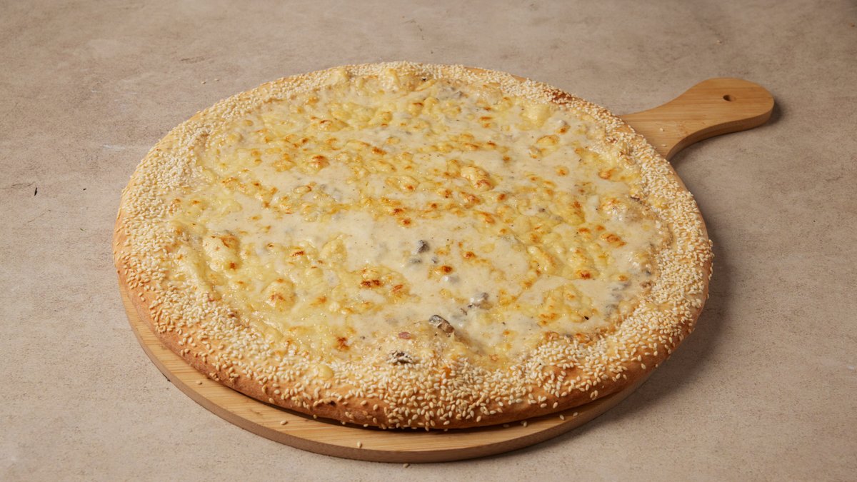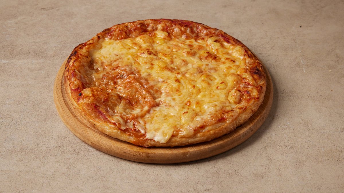 פיצה על בסיס בצק עלים. מוגש עם רוטב עגבניות מיוחד בהכנה עצמית וגבינה צהובה ומוצרלה. ניתן להוסיף תוספות בתשלום