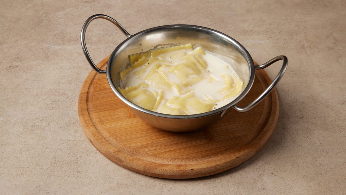 רוטב שמנת אלפרדו, גבינה צהובה ומוצרלה. ניתן להוסיף תוספות בתשלום