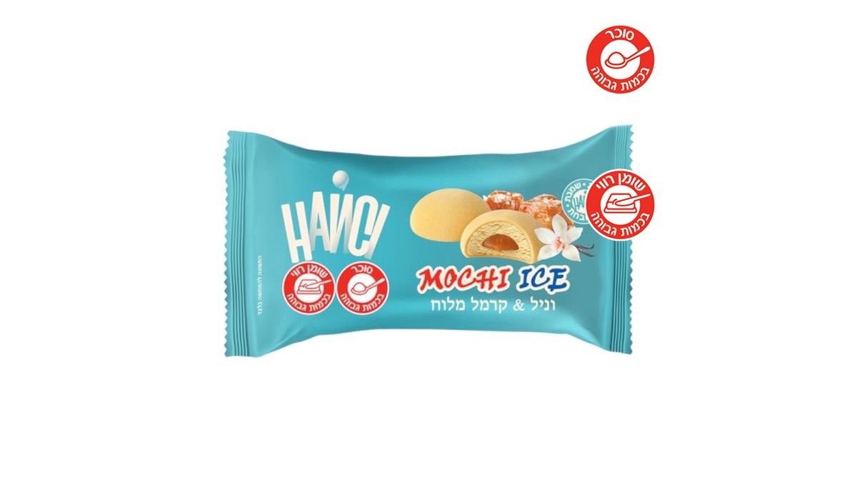 גלידת שמנת משובחת בטעם וניל במילוי "קרמל מלוח" במעטפת בצק אורז (2 יח') 80 גרם