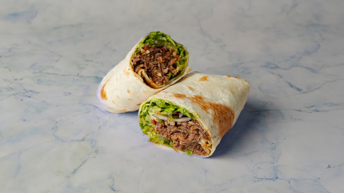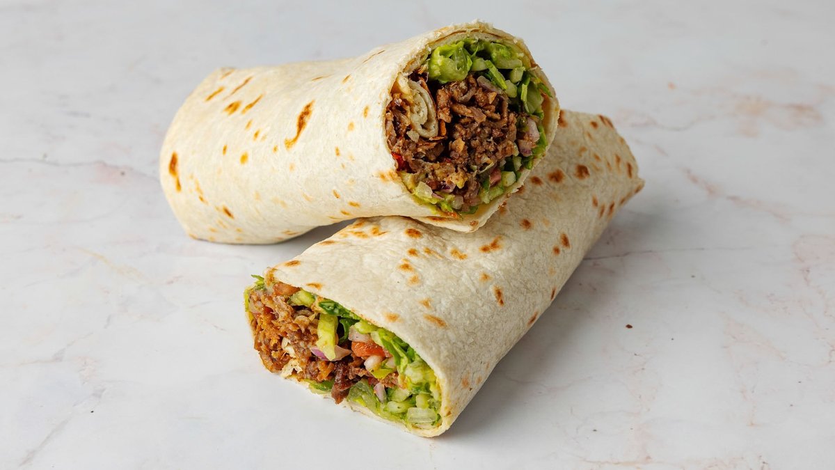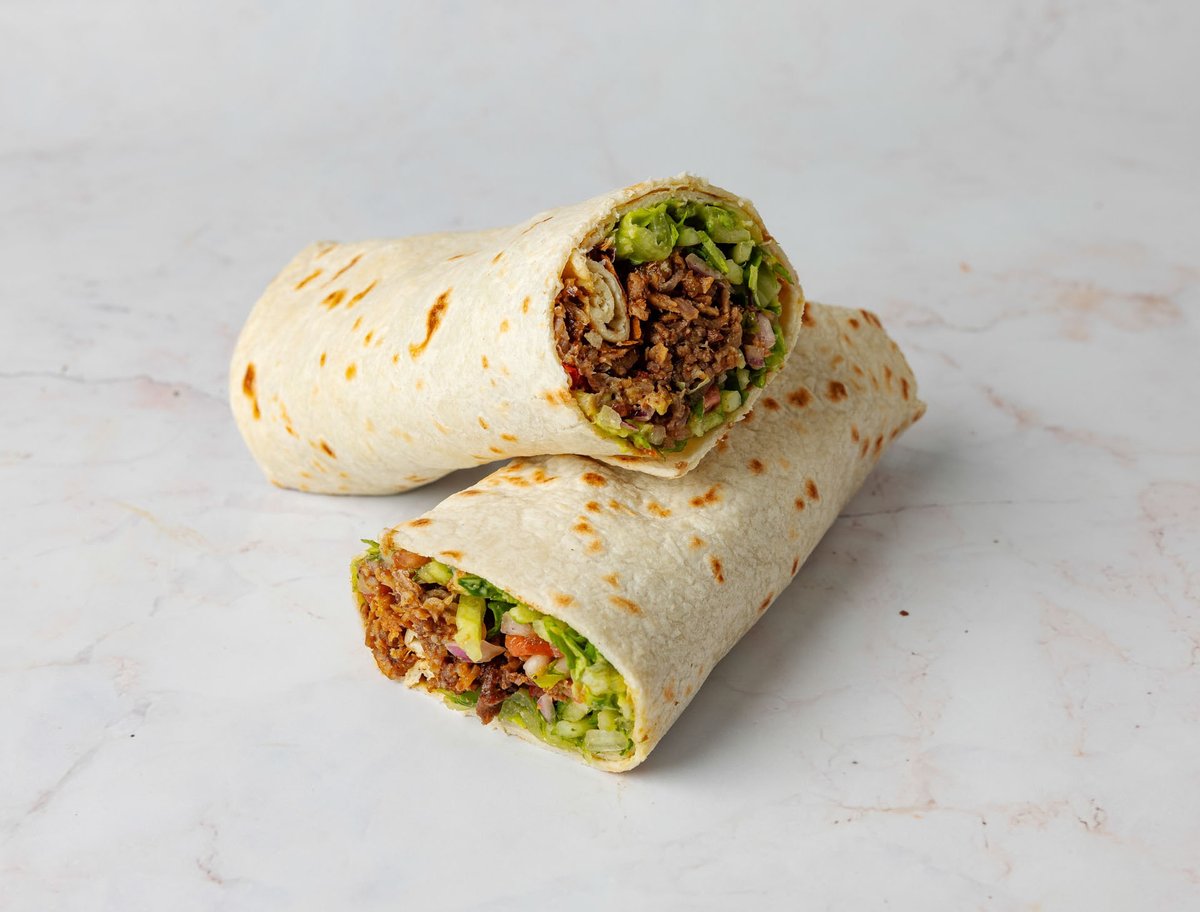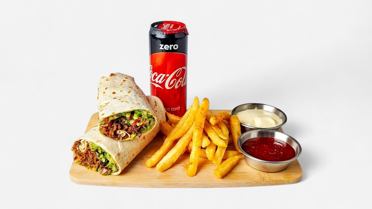 טורטיה עם 125 גרם בשר, ממרחים וסלטים לבחירה. מוגש עם צ׳יפס ופחית שתייה