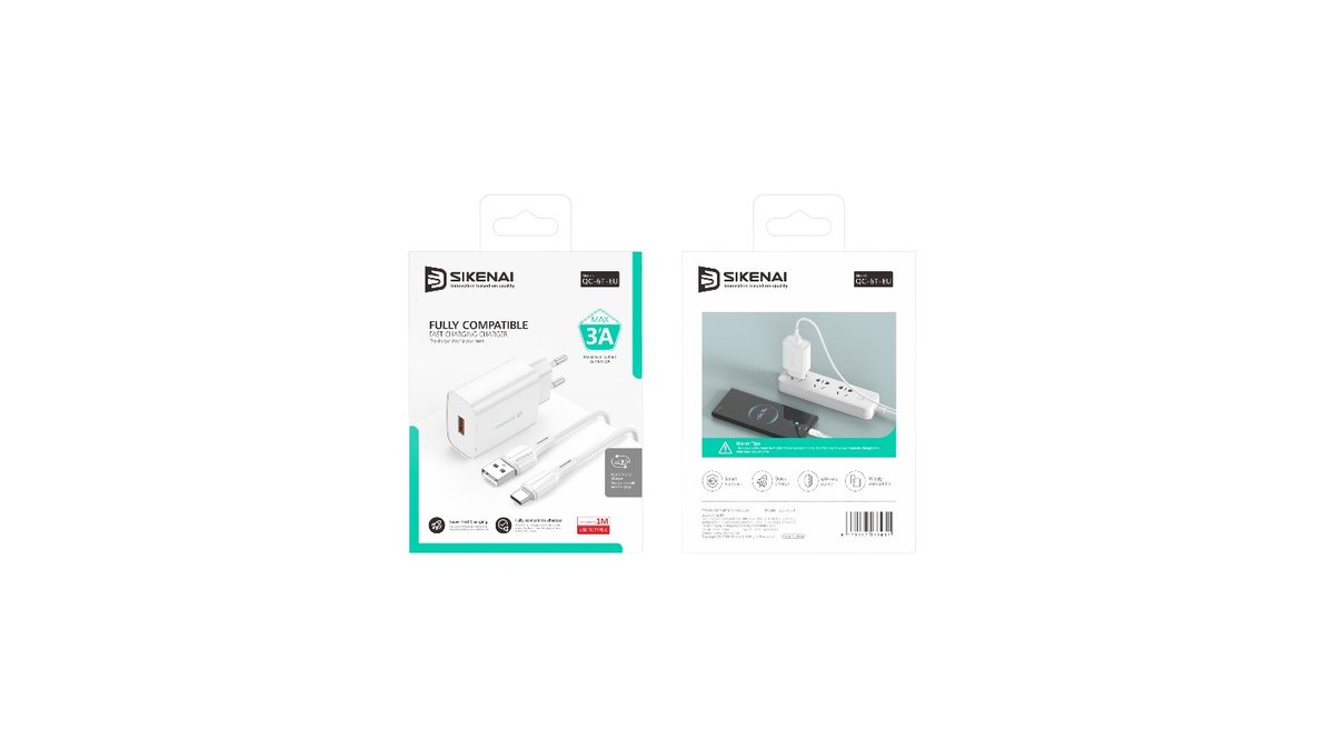 ראש מטען + כבל יואסבי לטייפ-סי ( USB to Type-C ) סיקנאי KX-3T 2.1A