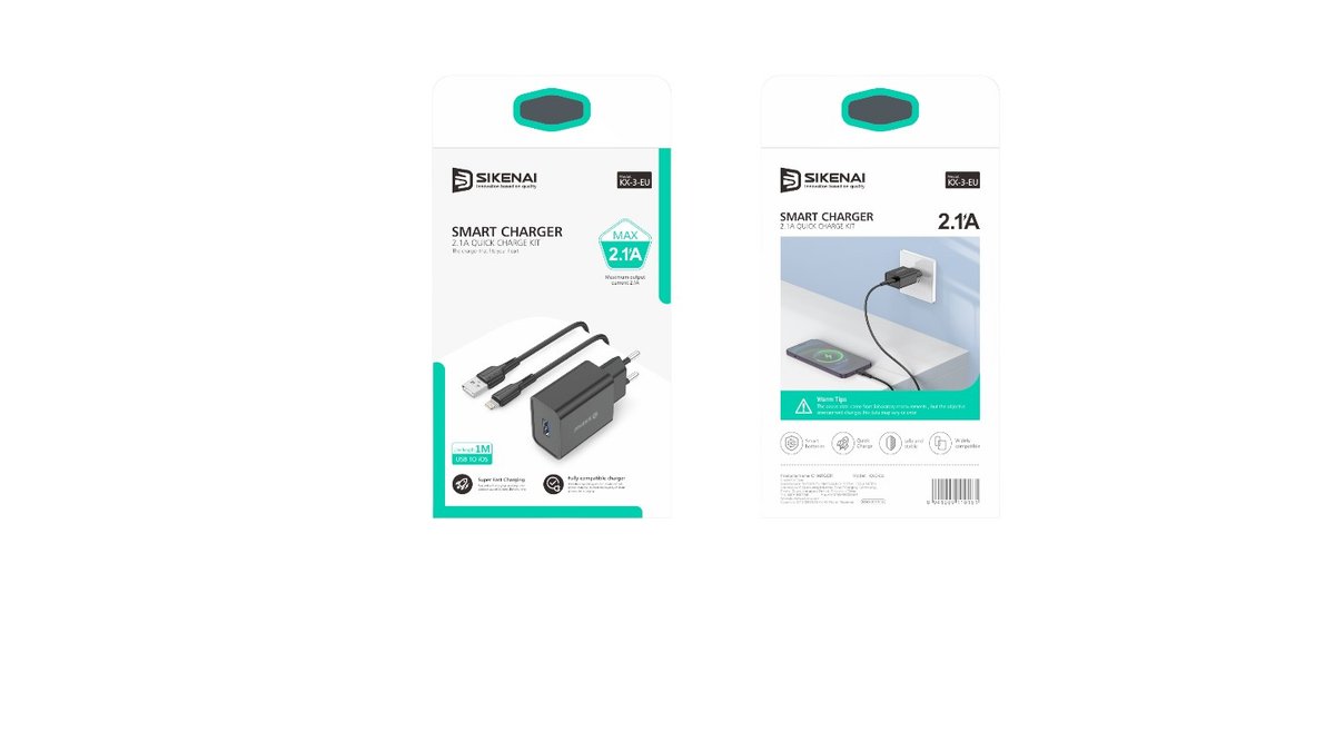 ראש מטען + כבל יואסבי ללייטנינג ( USB to Lightning ) סיקנאי KX-3L 2.1A
