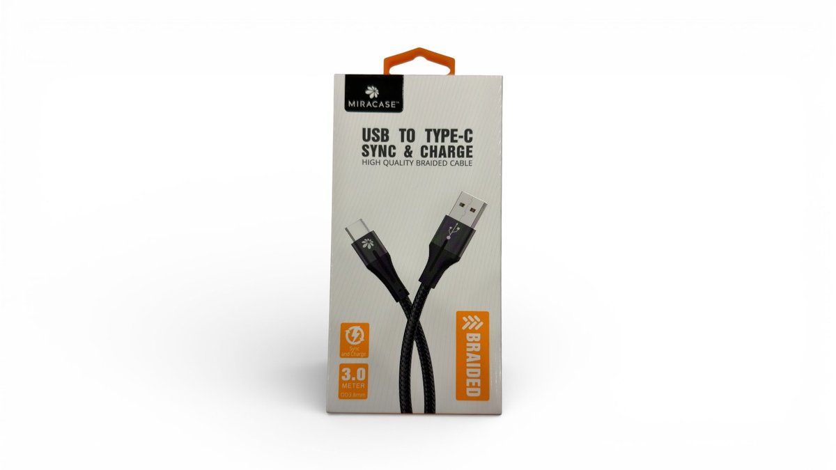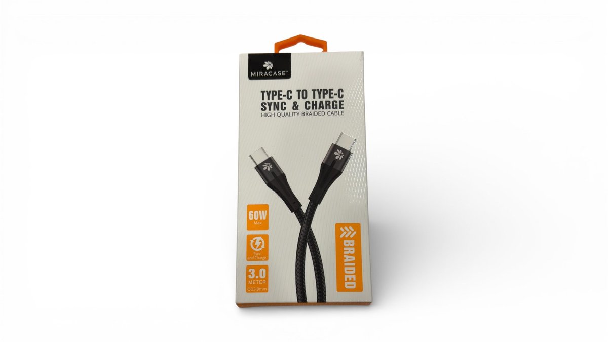 כבל טעינה 3 מטר Type-C מהיר תומך 60 וואט Miracase