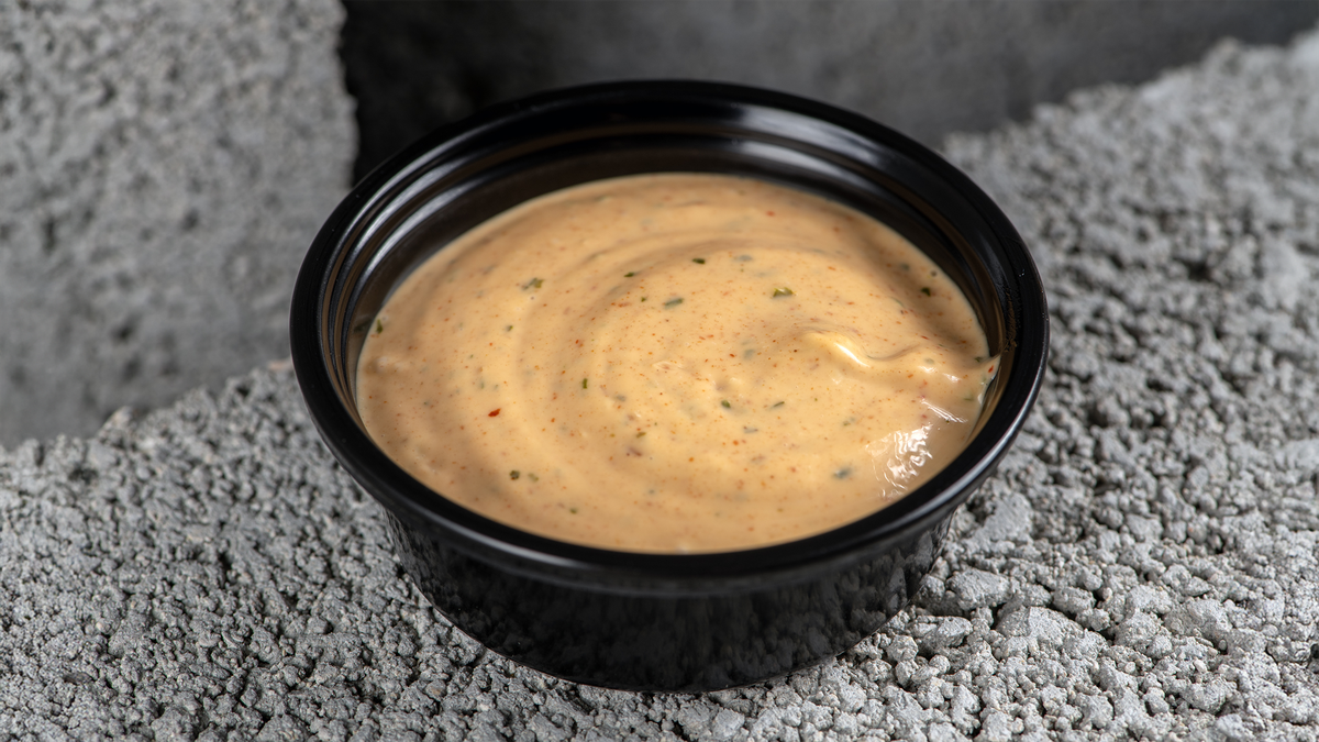 המבורגר 220 גרם 100% בקר טרי שנטחן במקום, בלחמניה עם ספייסי מיונז, עלי רוקט, חלפיניו, צ'ימיצורי ושום קונפי