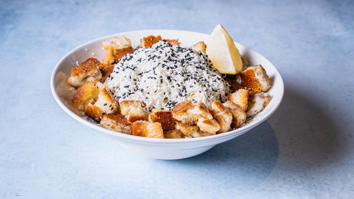 מלוואח מפנק עם מלפפון חמוץ, אריסה, ביצה קשה וטחינה
