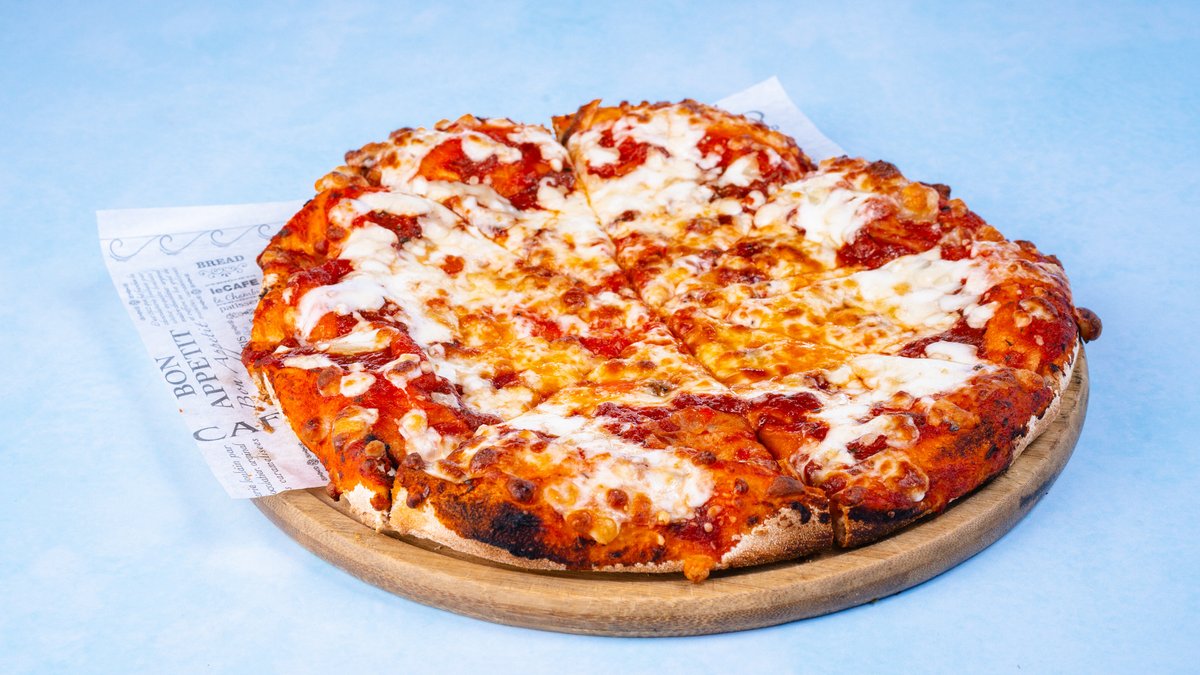 פיצה על בצק פרנה עם רוטב עגבניות הבית של ממן, מיקס גבינות מוצרלה צהובה