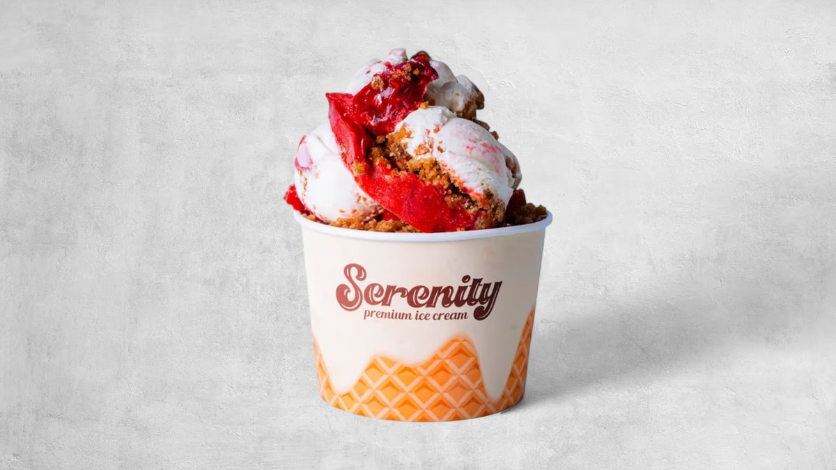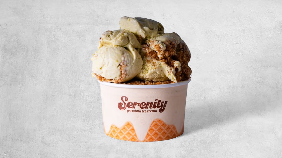 קינמון עדין בגלידת שמנת רכה, משובץ במיקס תפוחים עסיסיים, שברי בצק פאי חמאה, שקדים קלויים וגרידת לימון רעננה