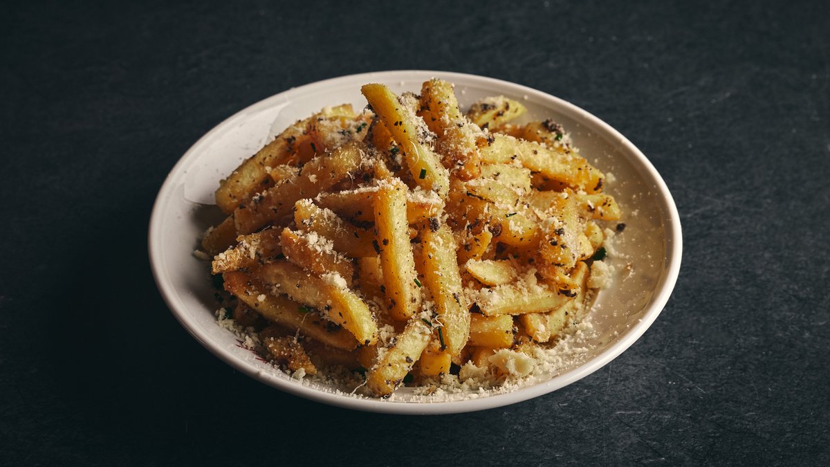 צ'יפס קריספי, מחית כמהין, פרמזן, בצל ירוק
