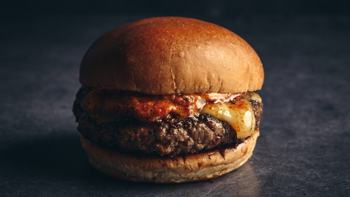 ביפבורגר קצבים 200 גרם מוגש בלחמנייה רכה עם גבינת מצנג'גו מיושנת 18 חודשים, חמאת פלפלים ואיולי מח עצם