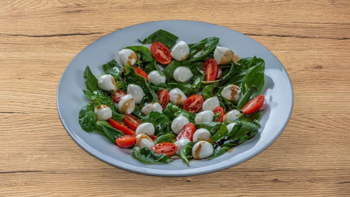 בייבי מוצרלה, עגבניות שרי, בזיליקום, פרמז'ן ובלסמי