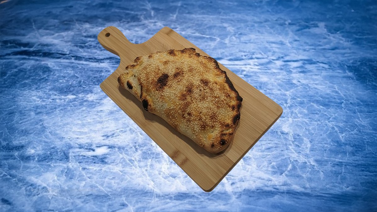 הפיצה בקוטר 45 ומגיעה עם שומשום על הקצוות (ניתן להוריד). מוגש לצד תבלין פיצה וצ'ילי גרוס