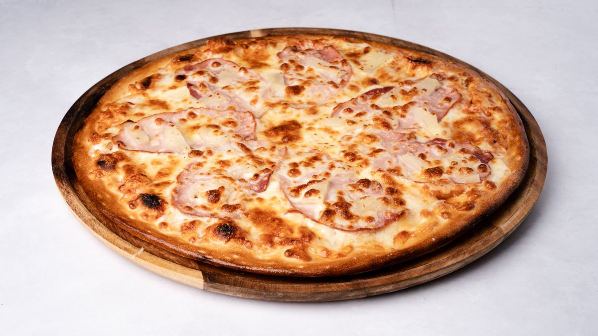 רוטב שמנת, גבינה צהובה, מוצרלה, גבינת גד 37%, שינקן, אננס ותירס עם משיחה של שמן זית ושום על הקשה. ניתן להוסיף תוספות בתשלום