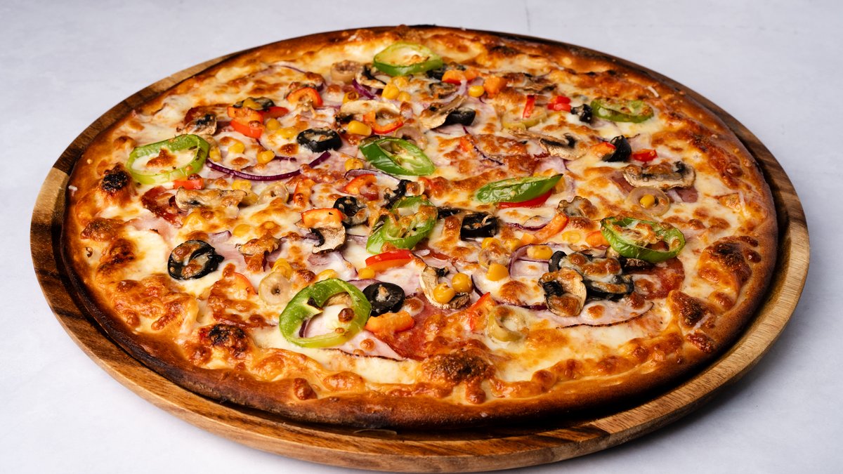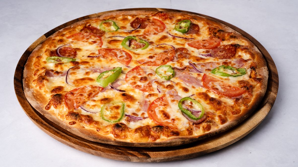רוטב עגבניות, גבינה צהובה, מוצרלה, גבינת גד 37%, פפרוני, בייקון, פסטרמת עוף, מיקס ירקות ופלפל חריף עם משיחה של שמן זית ושום על הקשה. ניתן להוסיף תוספות בתשלום