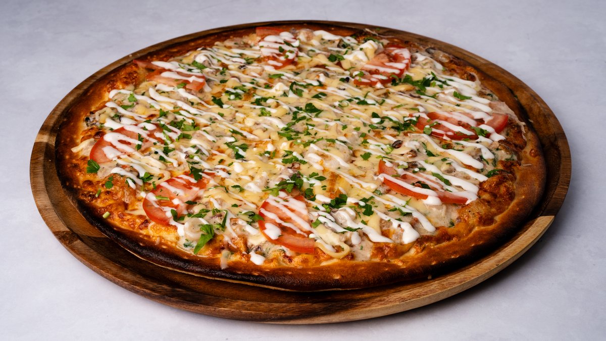 רוטב שמנת, גבינה צהובה, מוצרלה, גבינת גד 37%, שנקין או פסטרמה עוף לבחירה, זיתים שחורים, גמבה ופטריות עם משיחה של שמן זית ושום על הקשה. ניתן להוסיף תוספות בתשלום