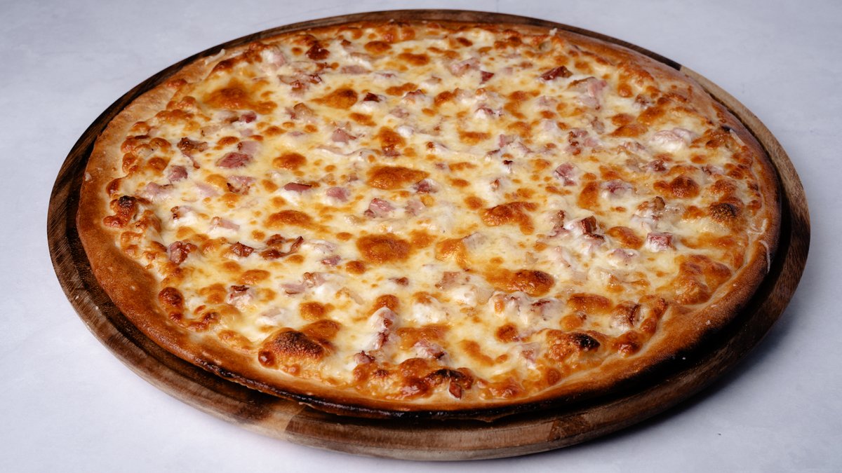 רוטב שמנת, גבינה צהובה, מוצרלה, גבינת גד 37%, פרמז׳ן ובייקון עם משיחה של שמן זית ושום על הקשה. ניתן להוסיף תוספות בתשלום