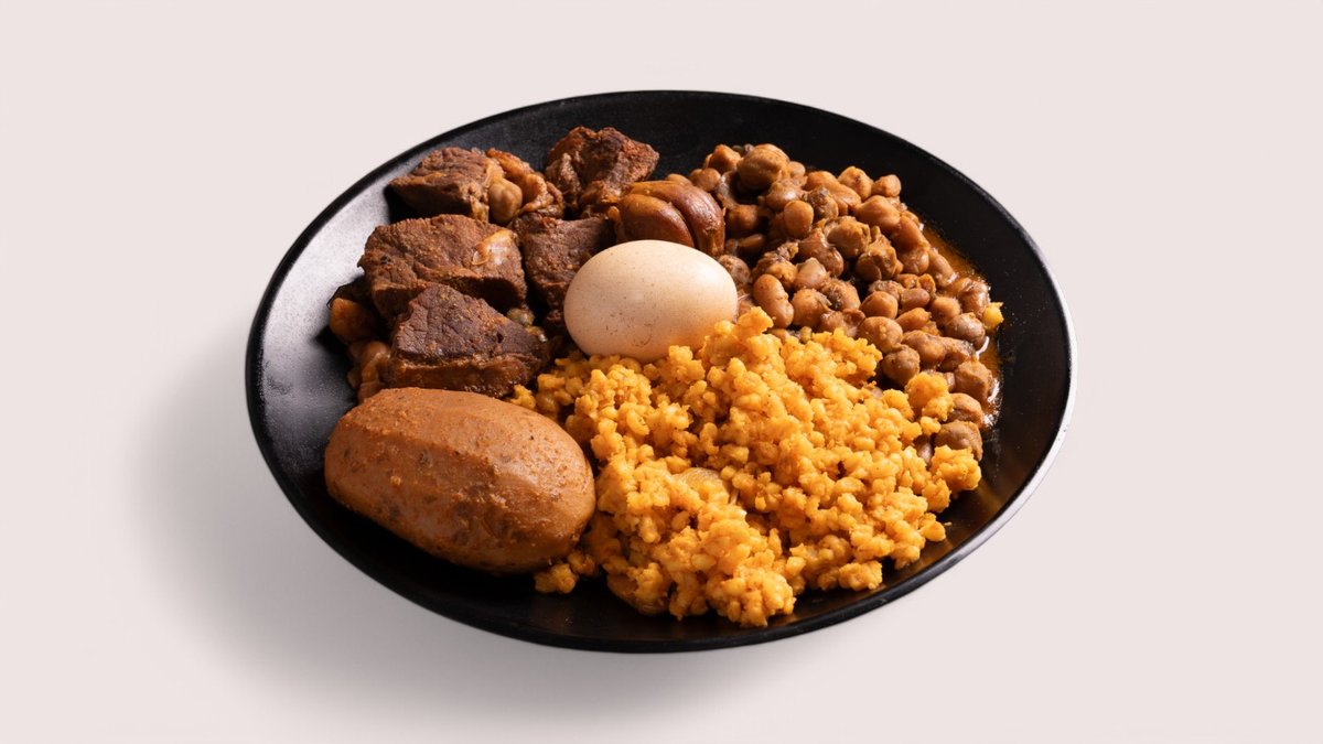 מוגש עם ביצה קשה ומטבוחה