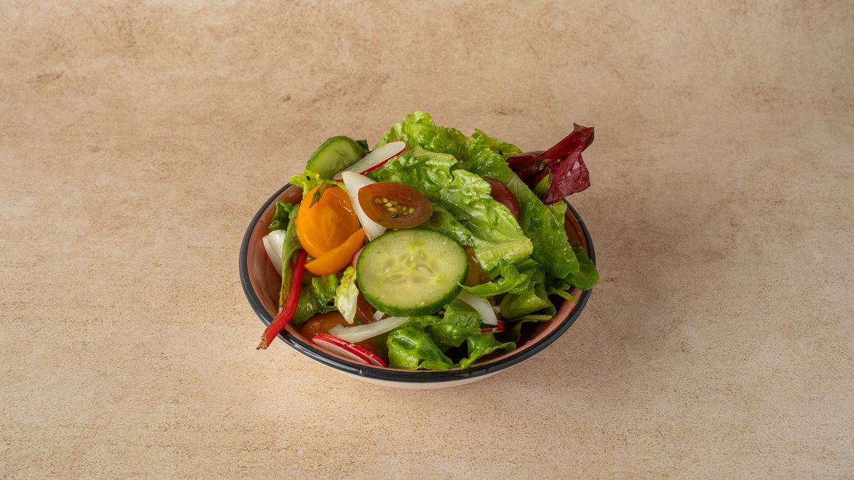פרי העונה, גרעיני דלעת, בצל ירוק, בצל לבן, שרי, מלפפון, צנונית, עליי בייבי, חסה ורוטב לבחירה
