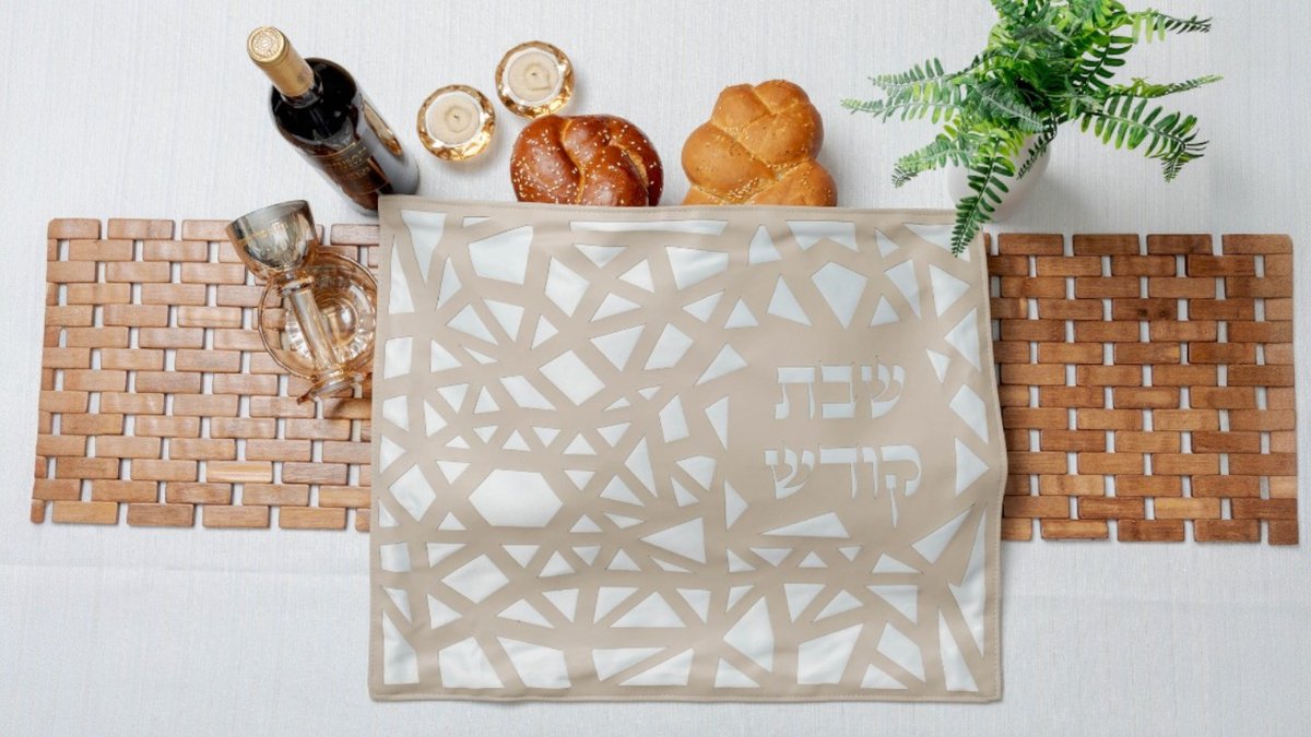 תבל סט 2 חלקים כיסוי מצה/ אפיקומן 40 עגול +26*26 שמנת
