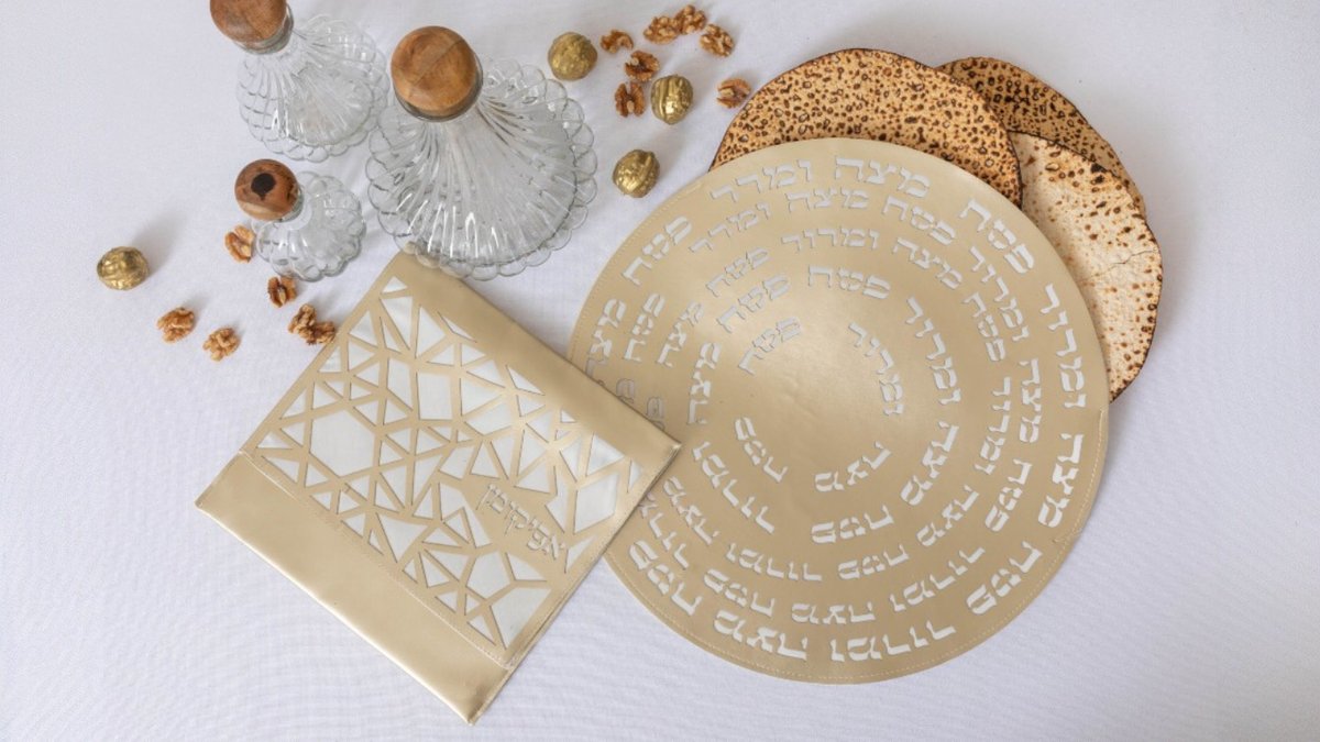 חרות סט 2 חלקים כיסוי מצה /אפיקומן 40עגול +26*26 זהב