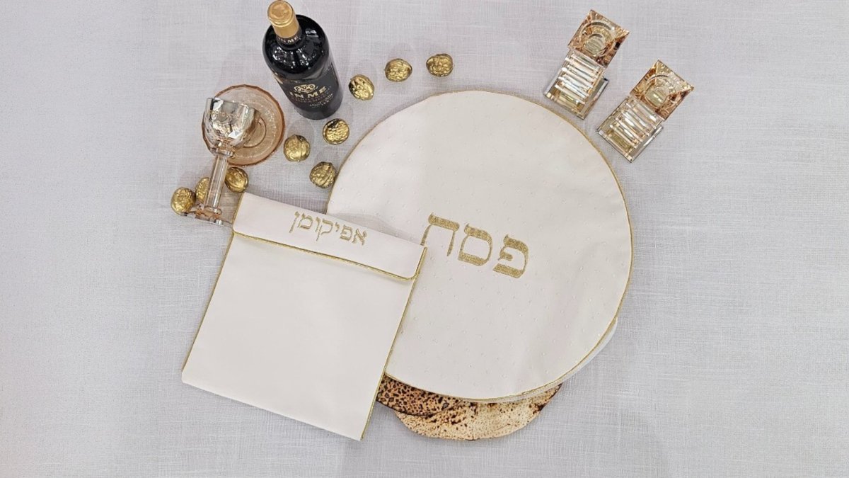 חרות סט 2 חלקים כיסוי מצה /אפיקומן 40עגול +26*26 שמנת