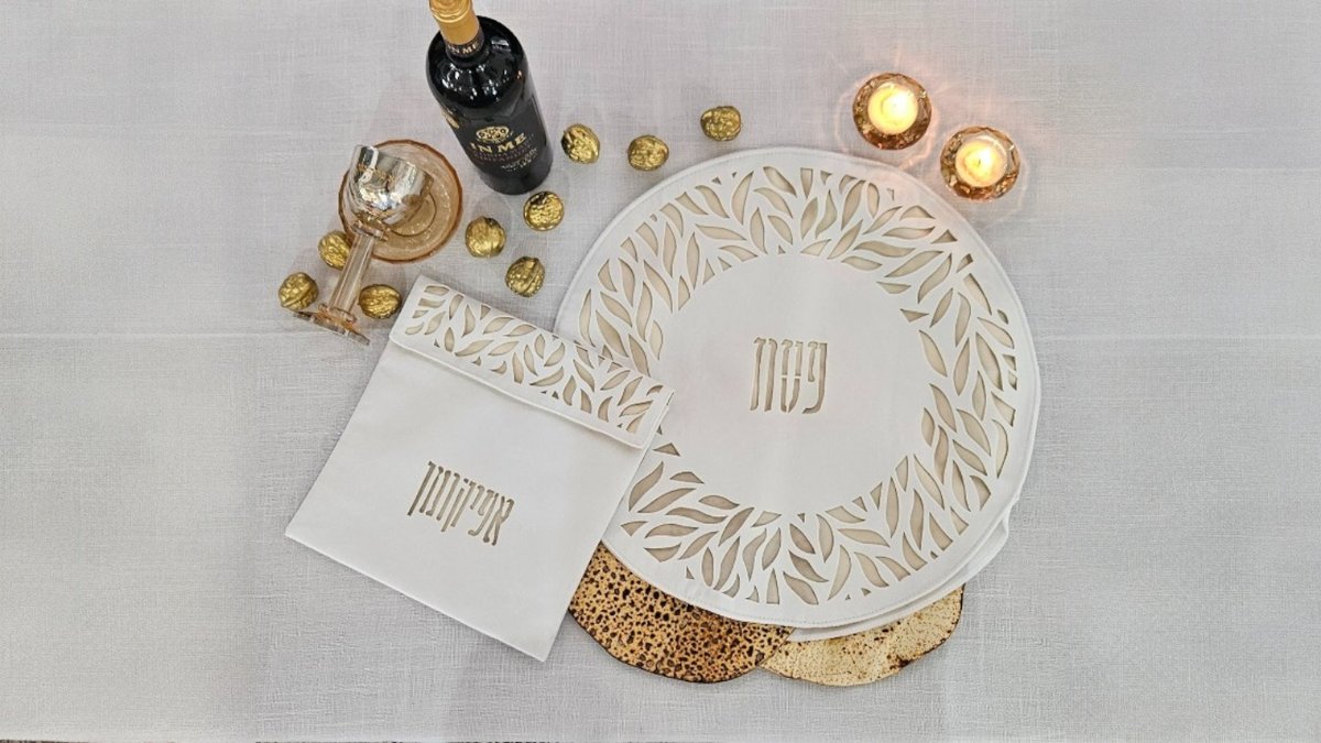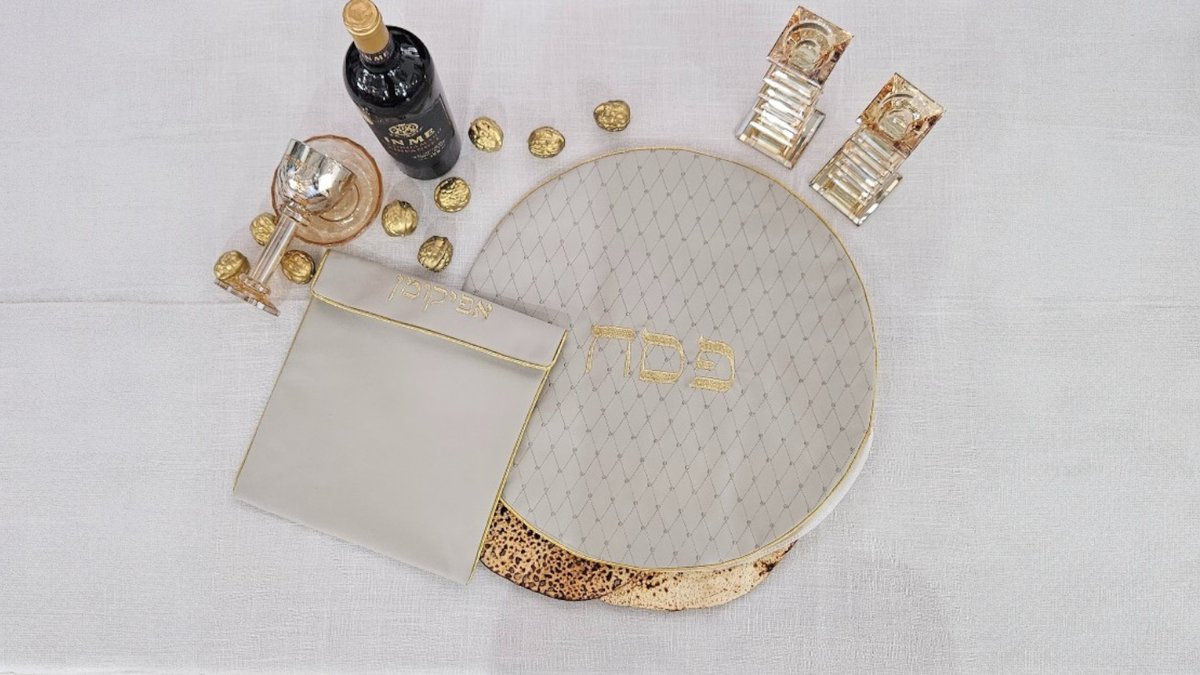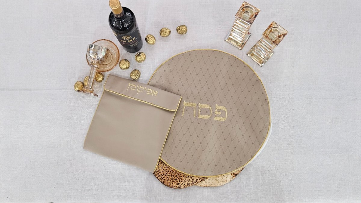 יותם סט 2 חלקים כיסוי מצה/אפיקומן 45 עגול +26*26 שמנת