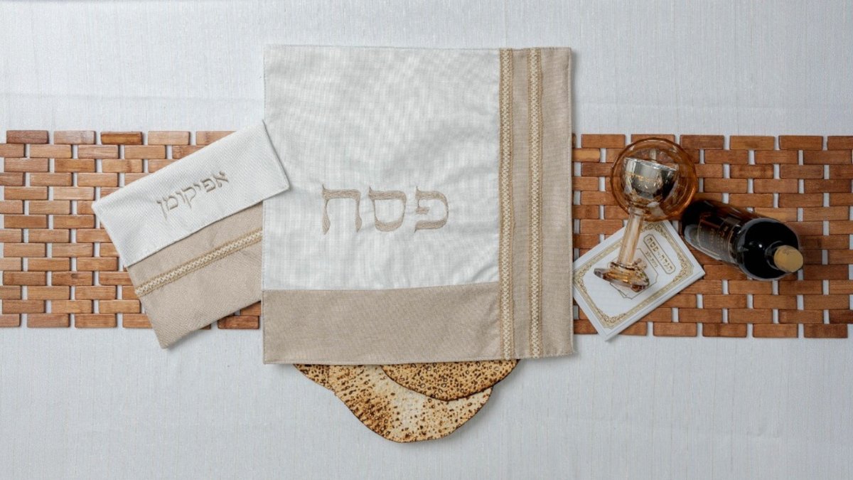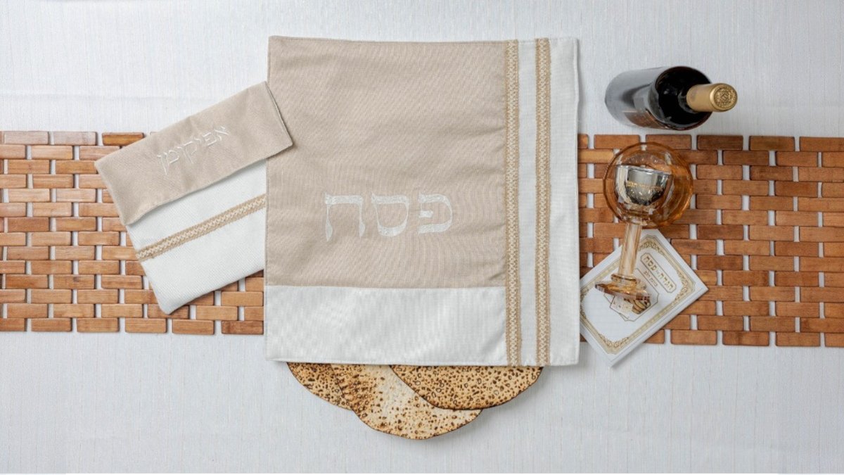 נביא סט 2 חלקים כיסוי מצה /אפיקומ ן 40 מרובע +26*26 שמנת