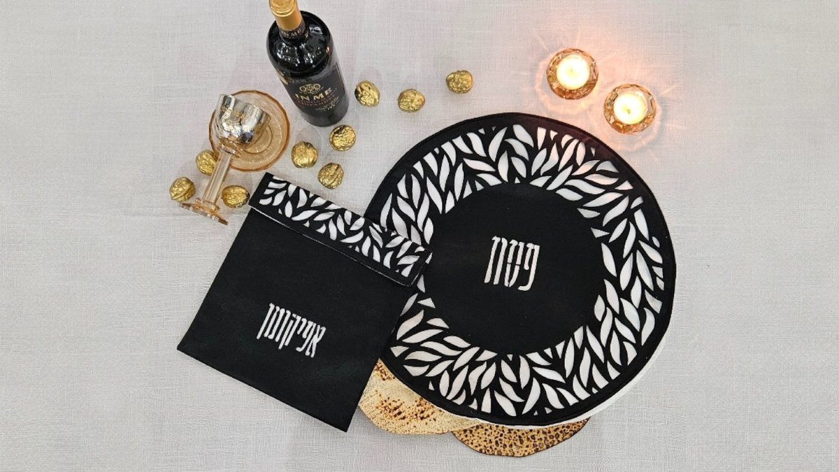 תבל סט 2 חלקים כיסוי מצה/ אפיקומן 40 עגול +26*26 שחור