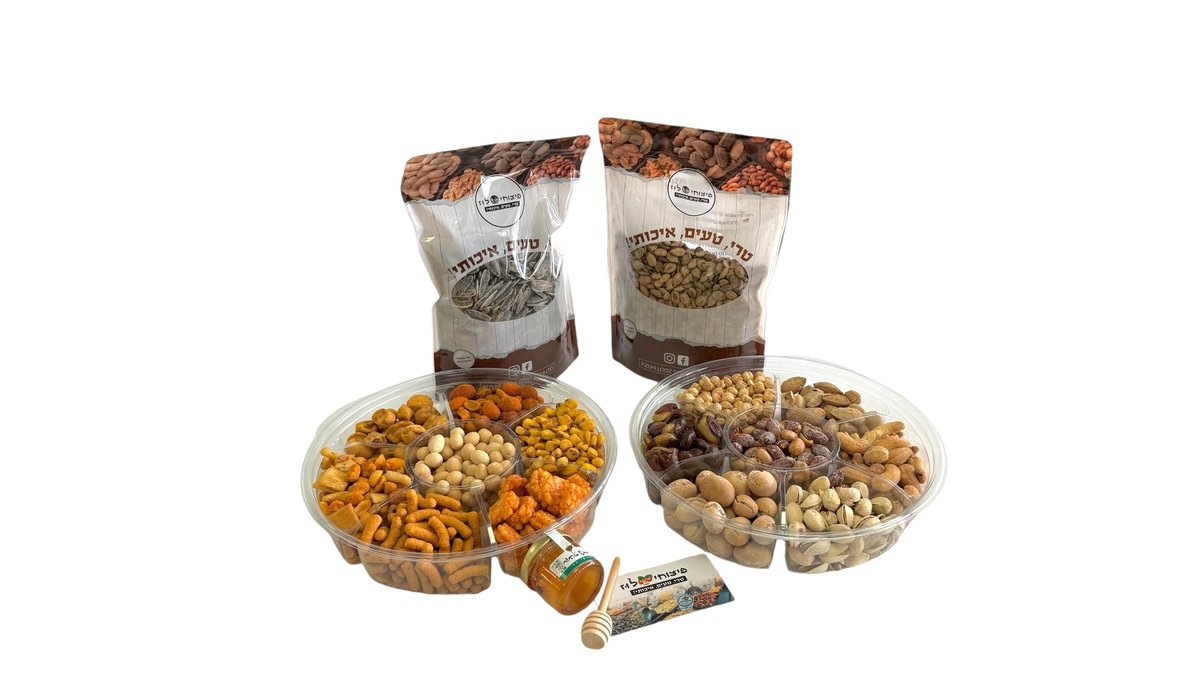 מארז 16 סוגי פיצוחים ודבש לראש השנה 1.7 קילו